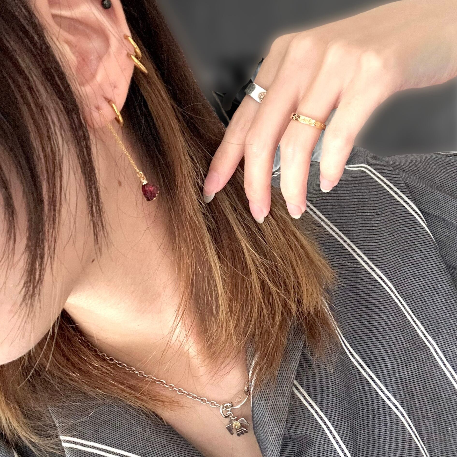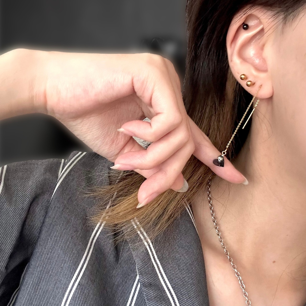 ふわりと靡く、細い鎖の先に揺れるミニハート。