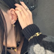 チェーンには、存在感のあるニッケルフリーゴールドカラーのデザインチェーンを使用。