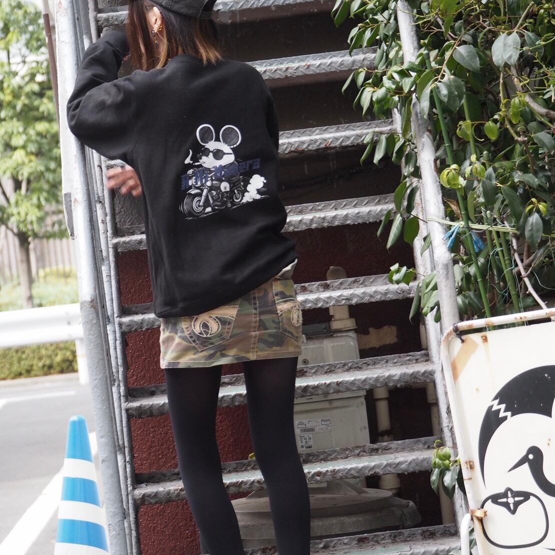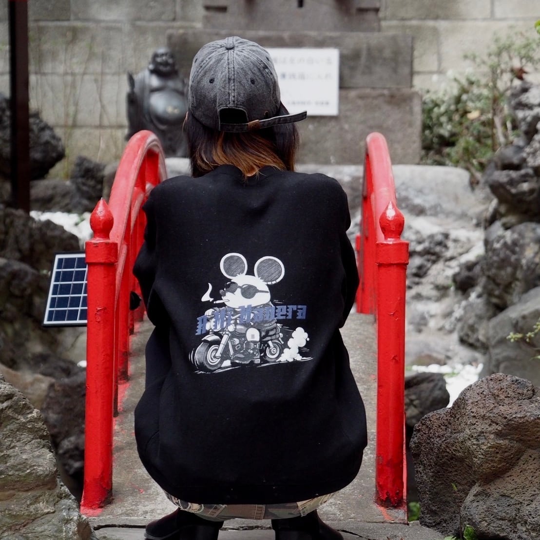 背中にはバイクで走るねじゅみ。