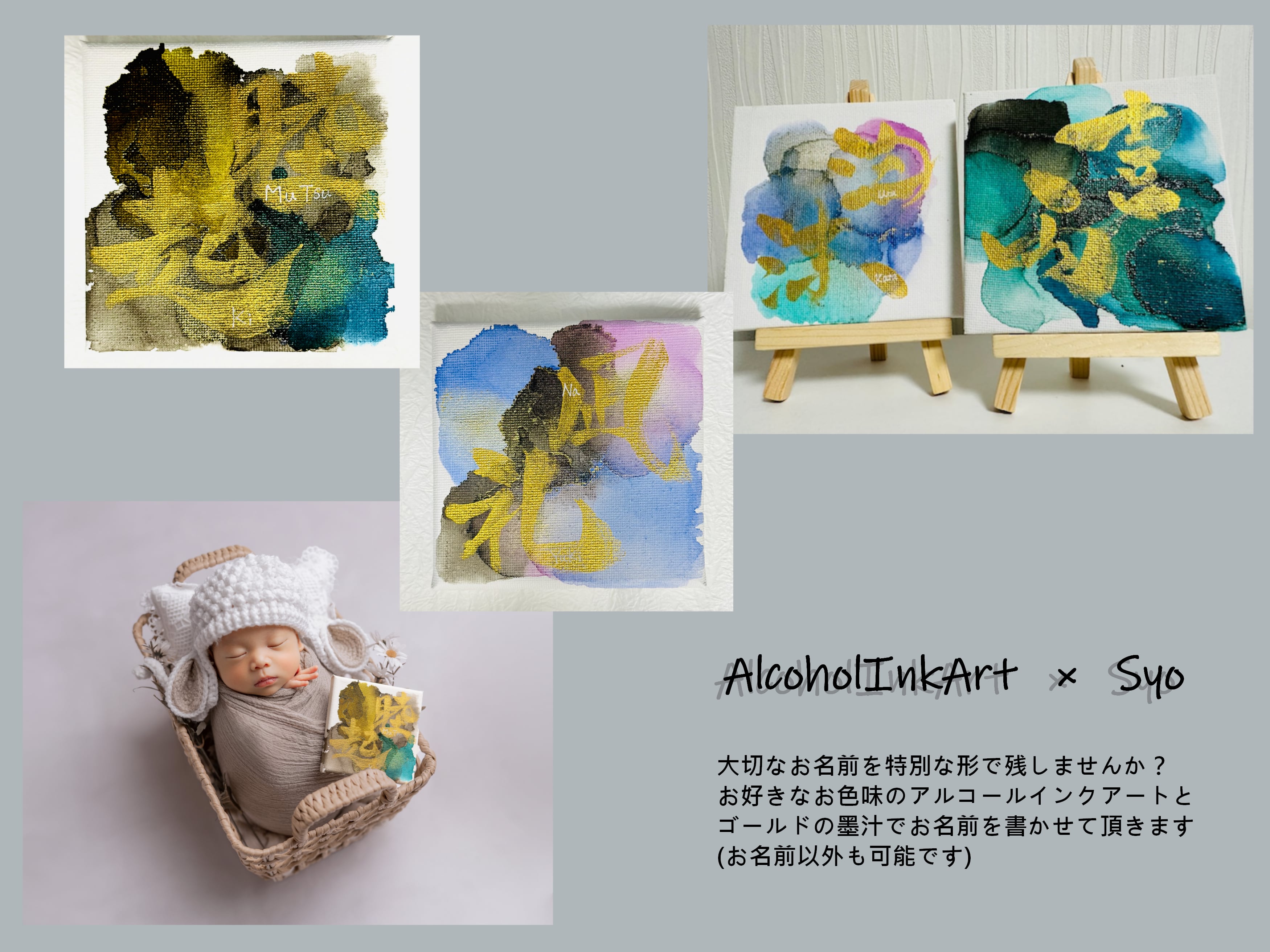 アルコールインクアートを使用したデザイン命名書となります。